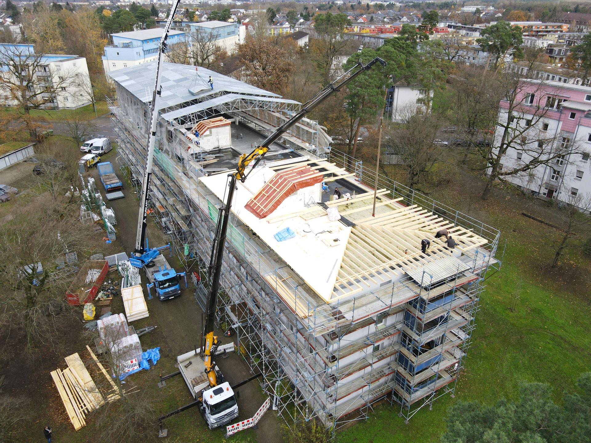 2025 Karlsruhe, Kanalweg, Brandschaden Notabdichtung Zimmerarbeiten Wärmedämmung Blechnerarbeiten Flachdachabdichtung << Referenzen