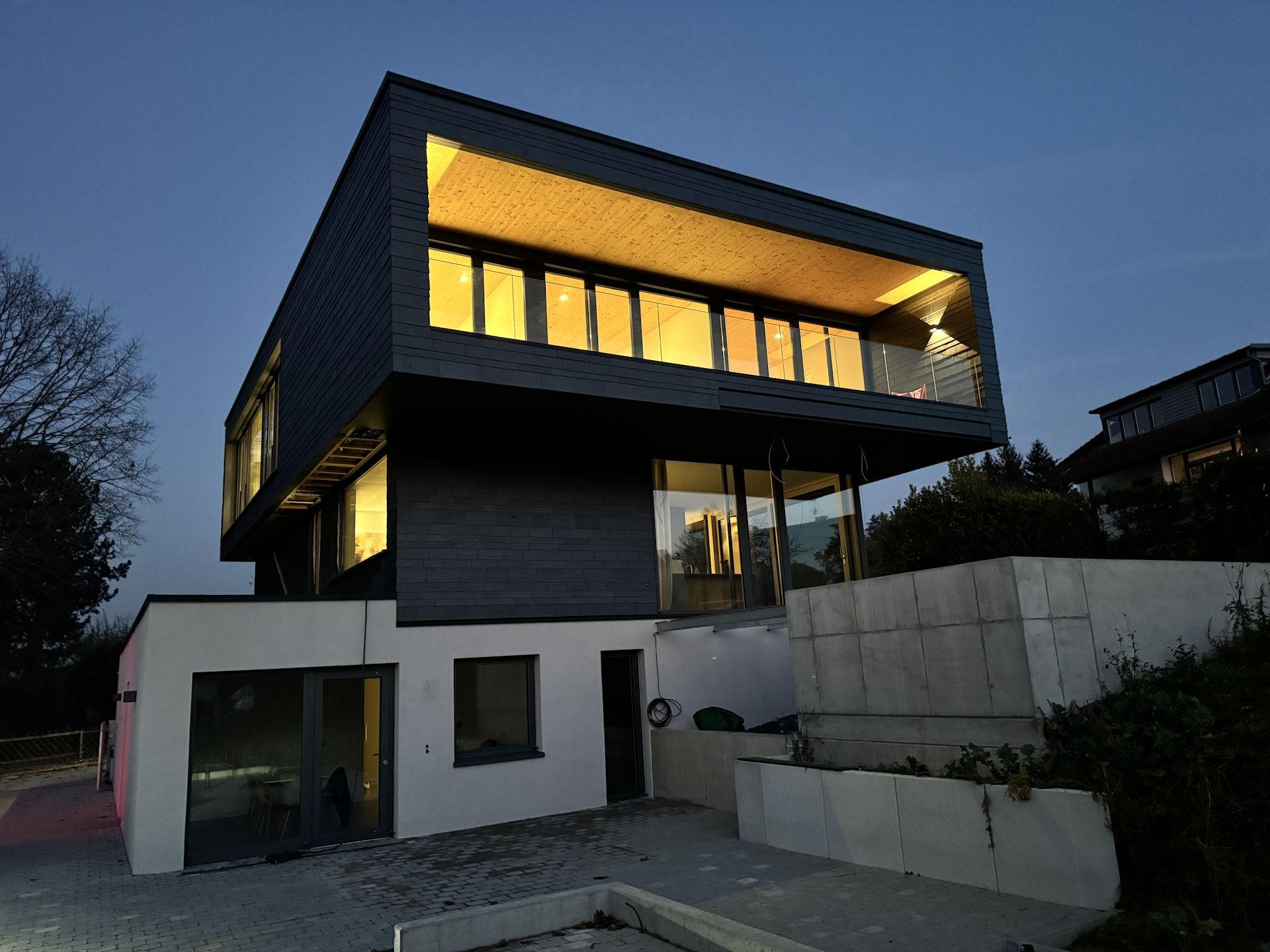 Das Ergebnis ist ein Unikat, das zeigt, was möglich wird, wenn individuelle Wünsche, hochwertige Materialien und sorgfältige Planung zusammenkommen und die Bauherren den Baumeistern vertrauen. Jeder Schritt – vom Entwurf des Architekten Andreas Schoch über die Expertise von Zimmermeister Joachim Westermann, bis hin zur handwerklichen Ausführung unserer Spezialisten – wurde kompetent umgesetzt.