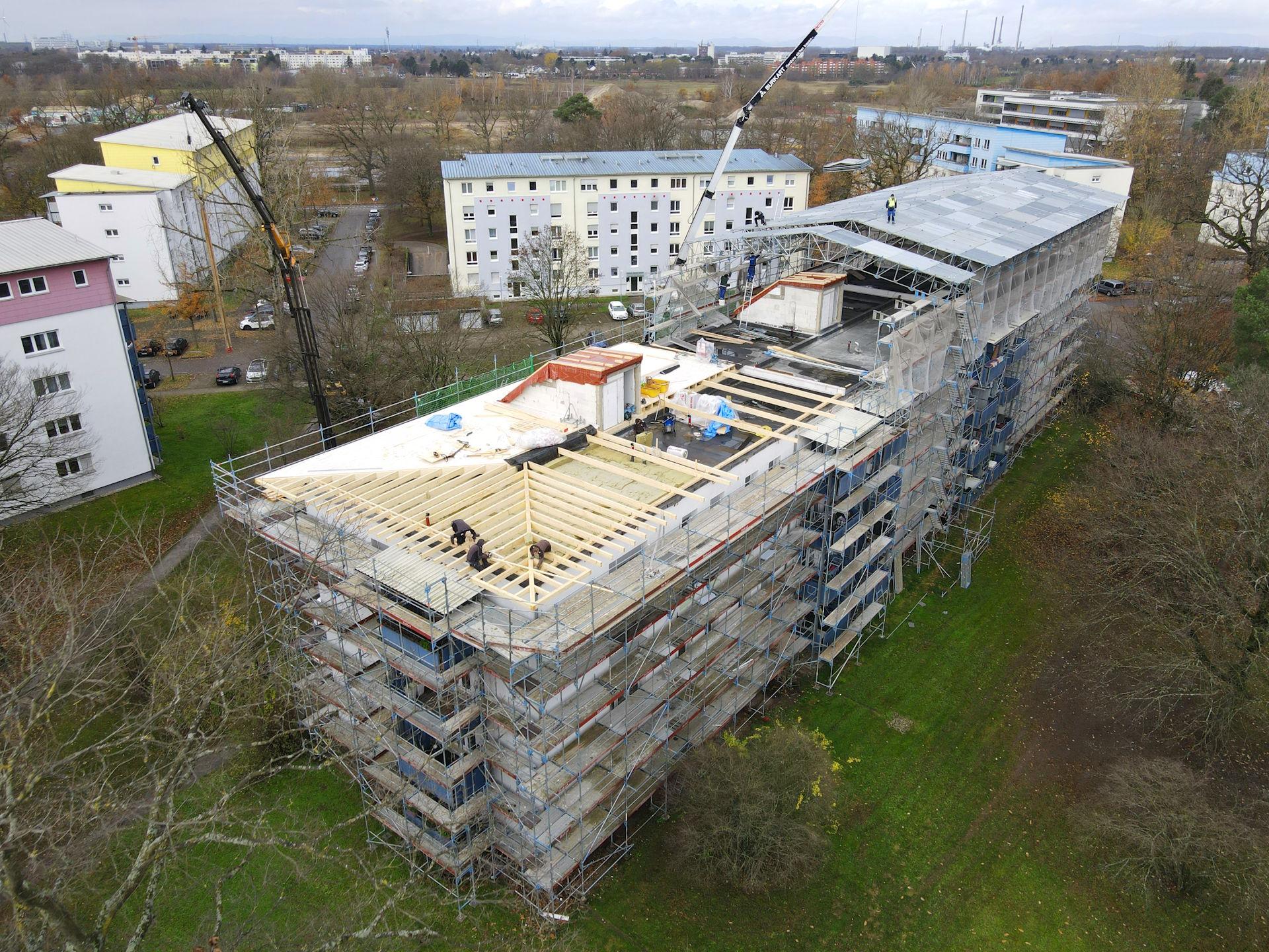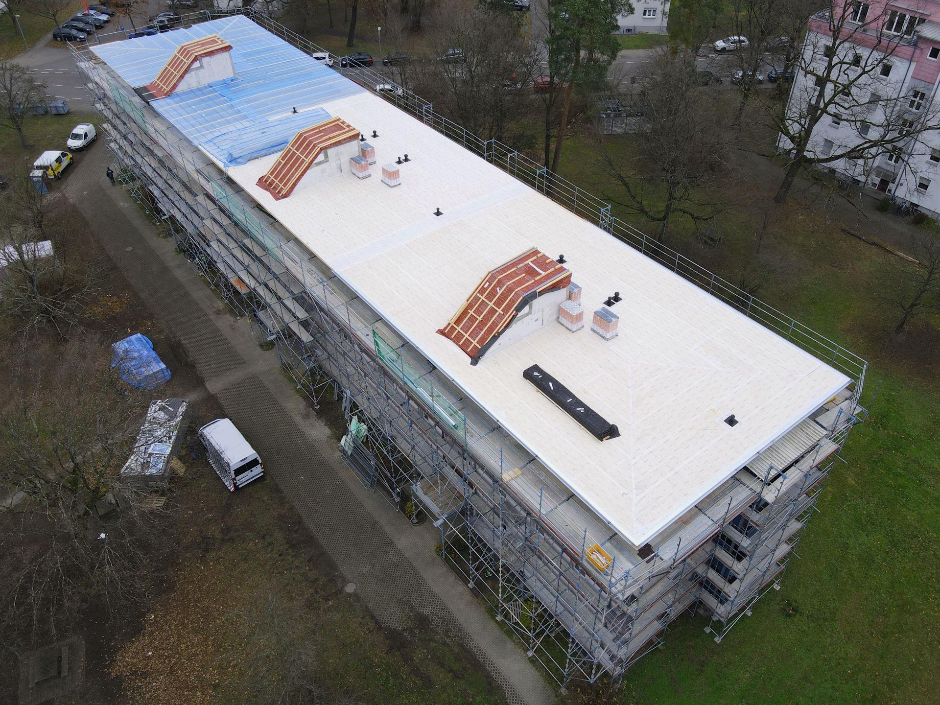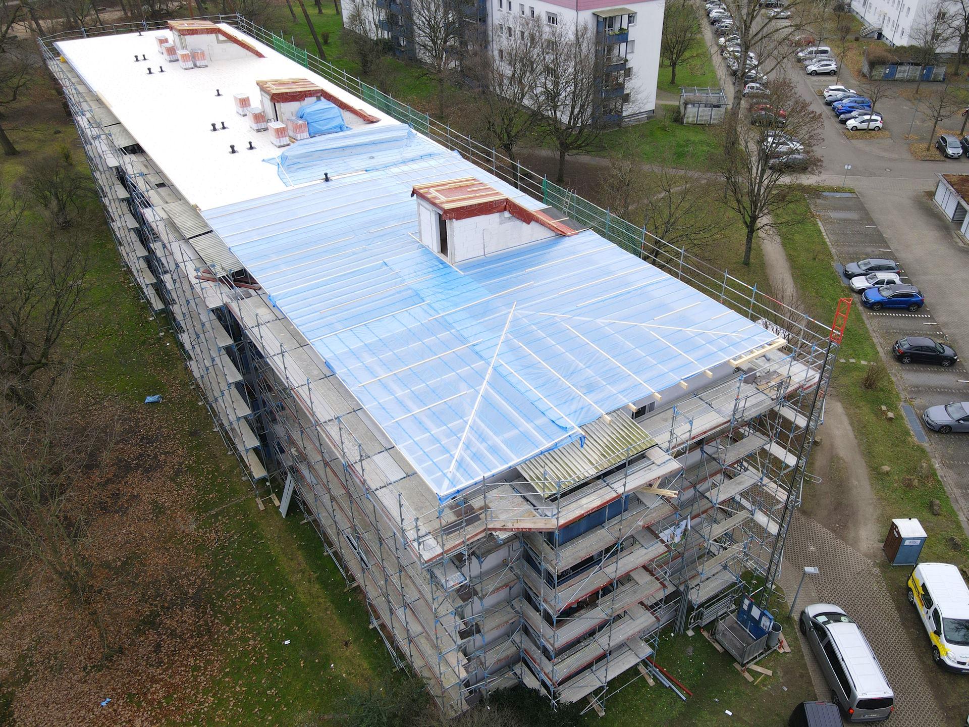 2025 Karlsruhe, Kanalweg, Brandschaden Notabdichtung Zimmerarbeiten Wärmedämmung Blechnerarbeiten Flachdachabdichtung << Referenzen