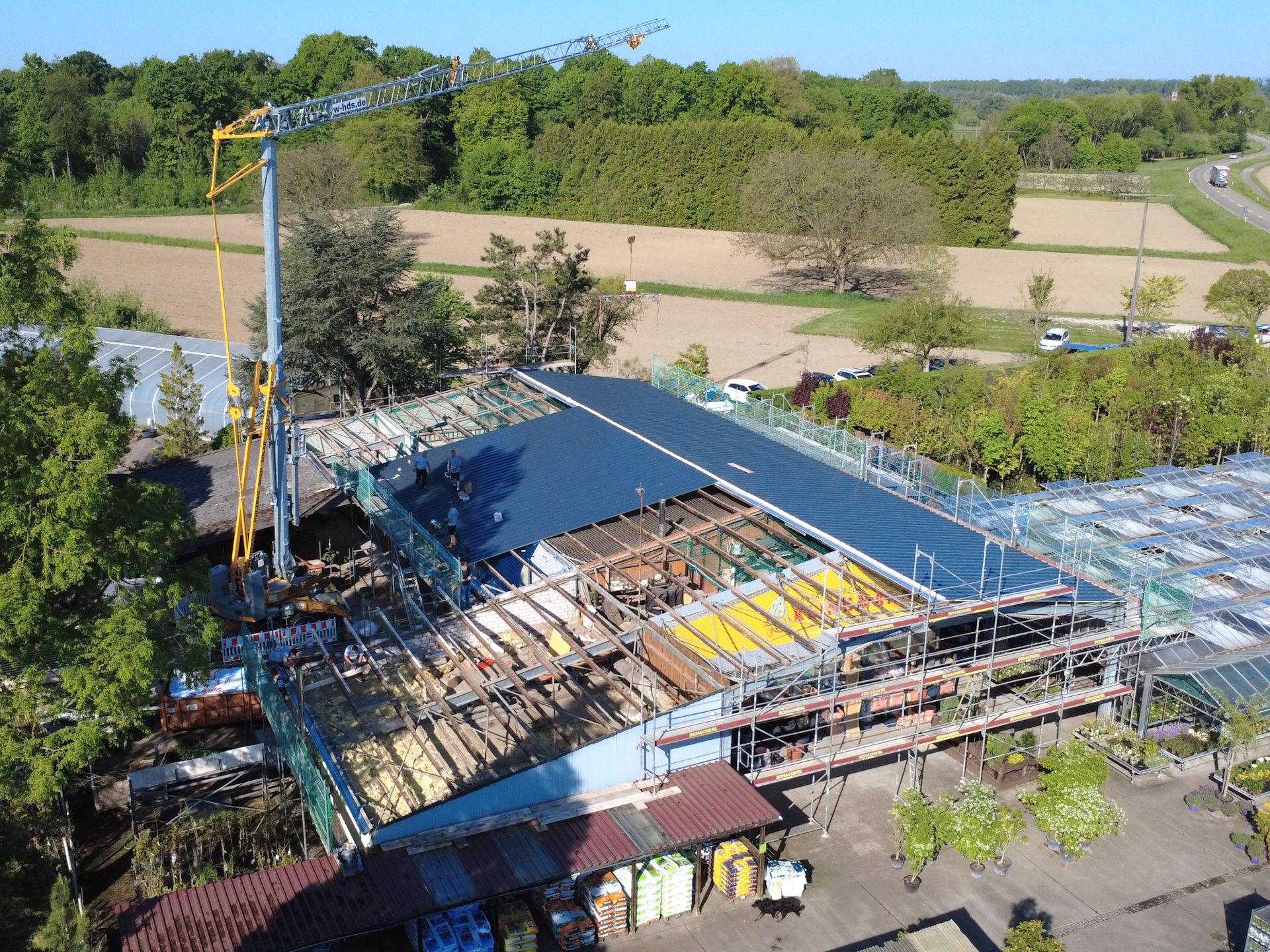 2025 Pflanzencenter Klingmann Rastatt Gerüstbau und Innennetze Asbestzementsanierung Blechnerarbeiten Dacheindeckung mit Sandwichelementen PV Anlage << Referenzen