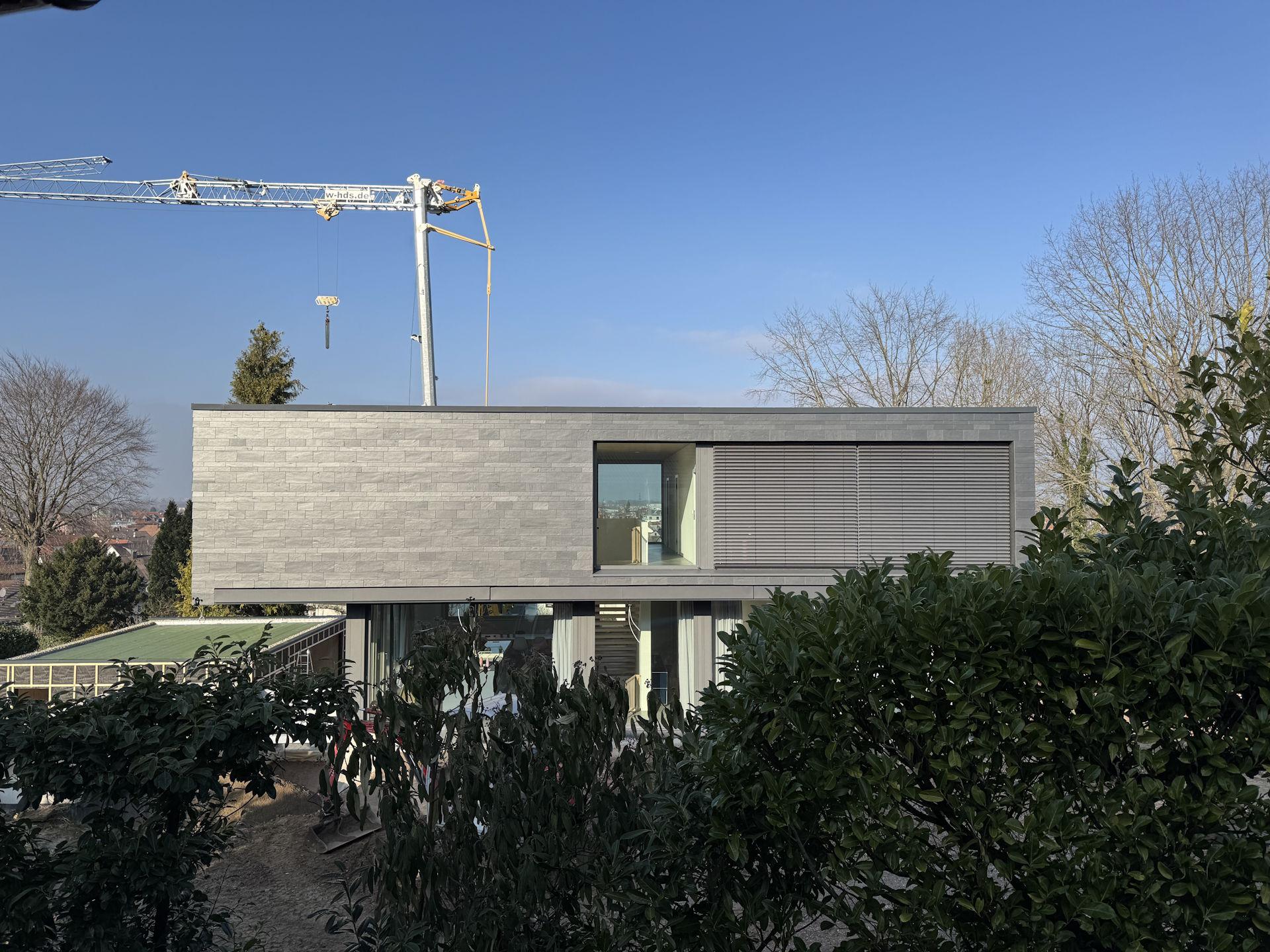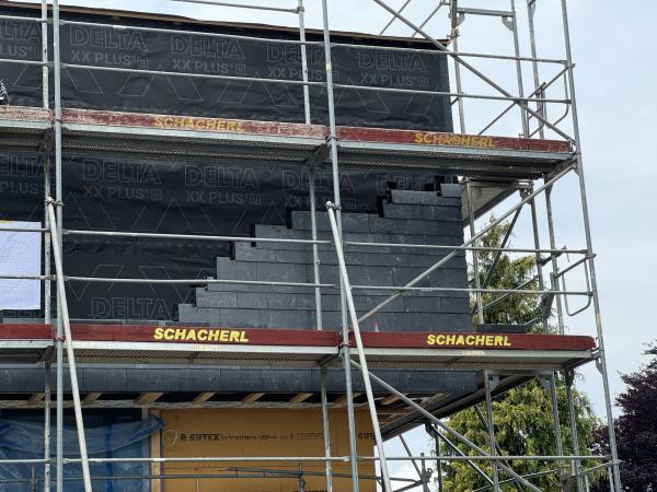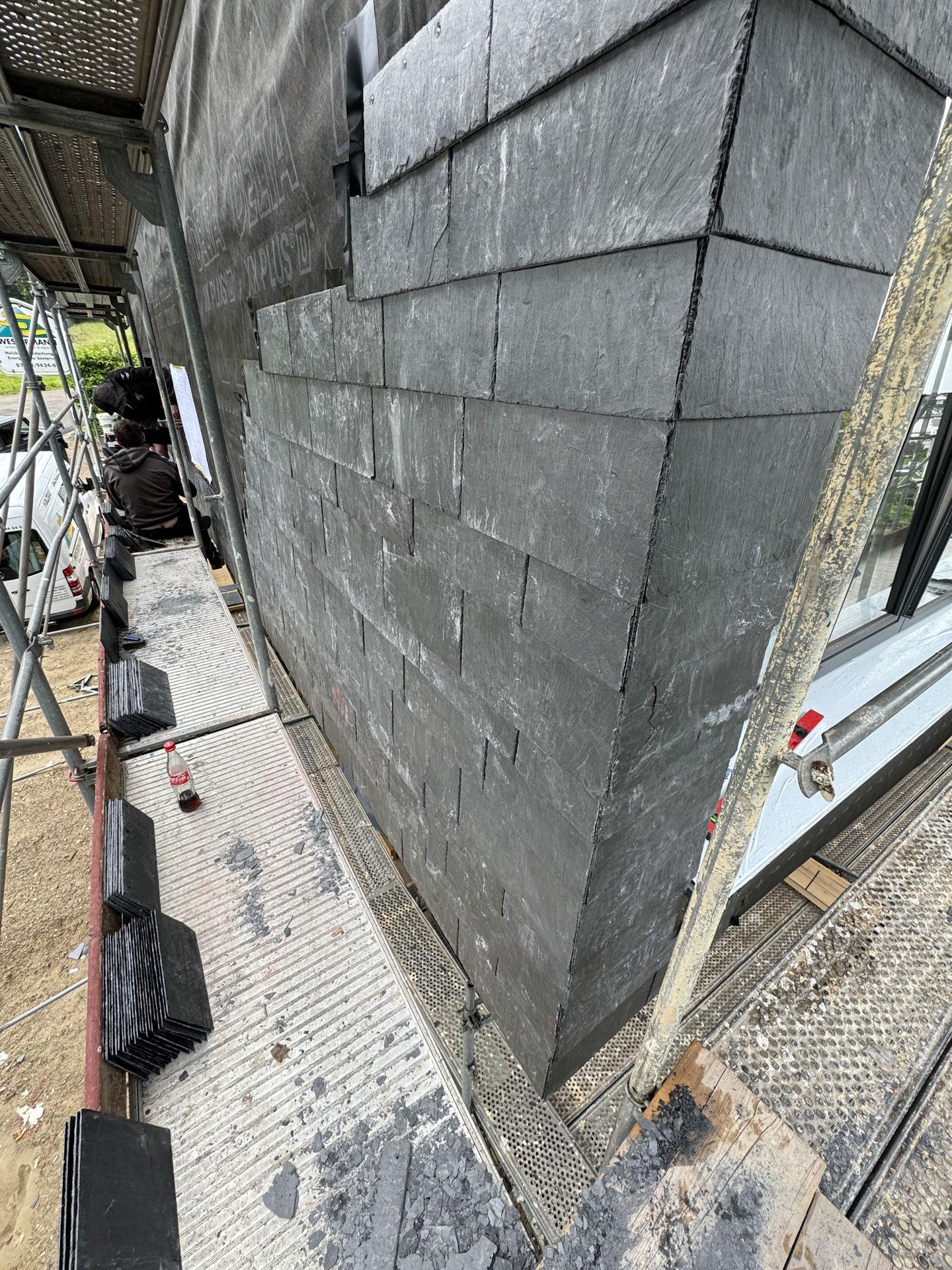 Wir nahmen die handwerkliche Herausforderung selbstbewusst an und erlernten mit großem Vergnügen die Techniken der Schieferverarbeitung. Dieses Projekt hat uns nicht nur fachlich bereichert, sondern auch gezeigt, wie inspirierend es ist, traditionelle Materialien in moderne Architektur zu integrieren. Auch dieses Projekt wird als Referenz bei Rathscheck geführt.