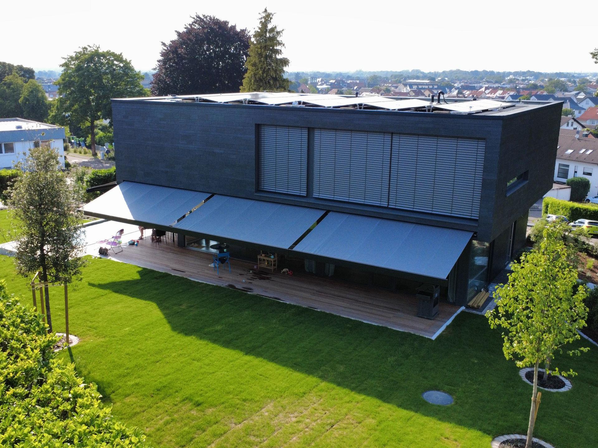 Ergänzt wurde dies durch den Baustoff Schiefer, der von uns erstmals in dieser Form als Fassadenmaterial eingesetzt wurde.